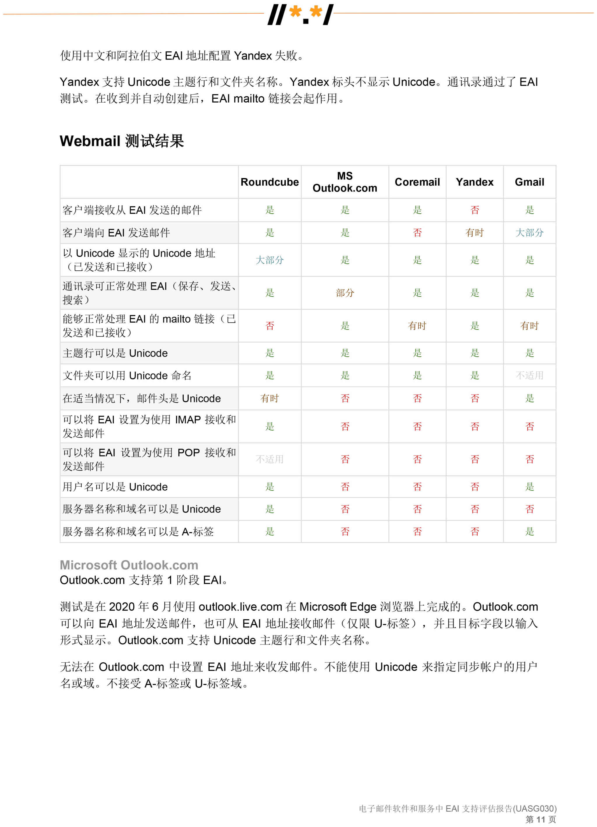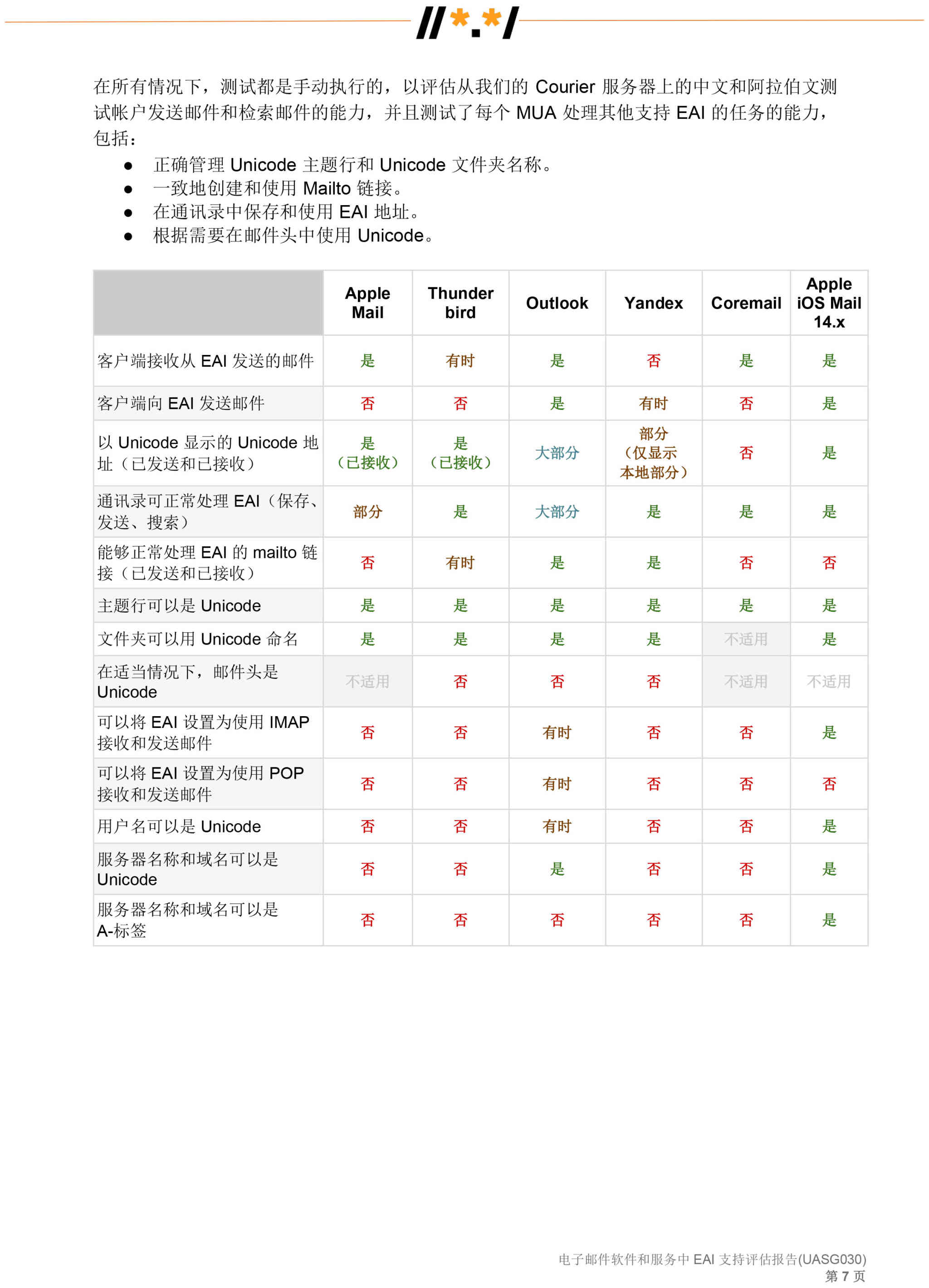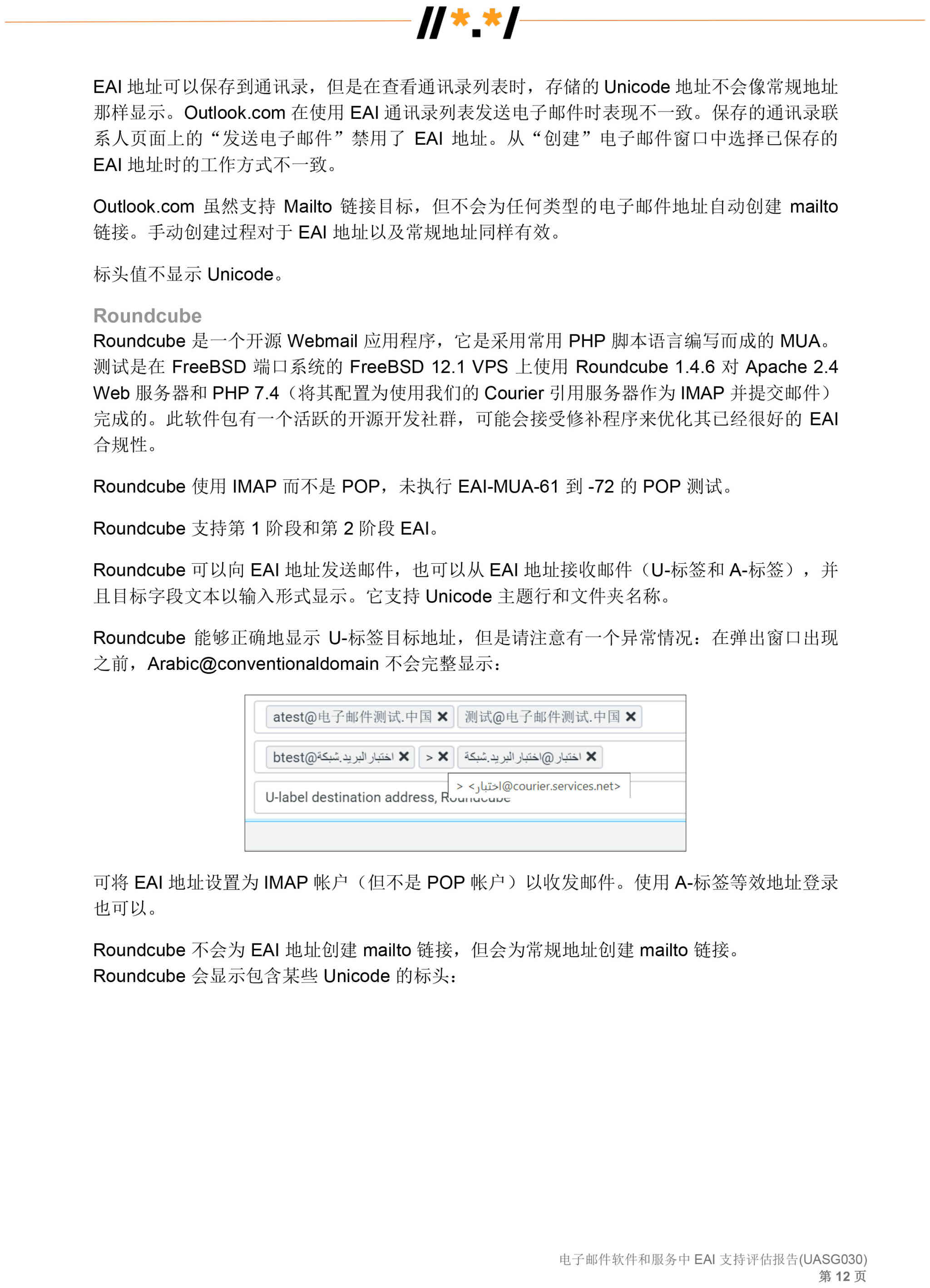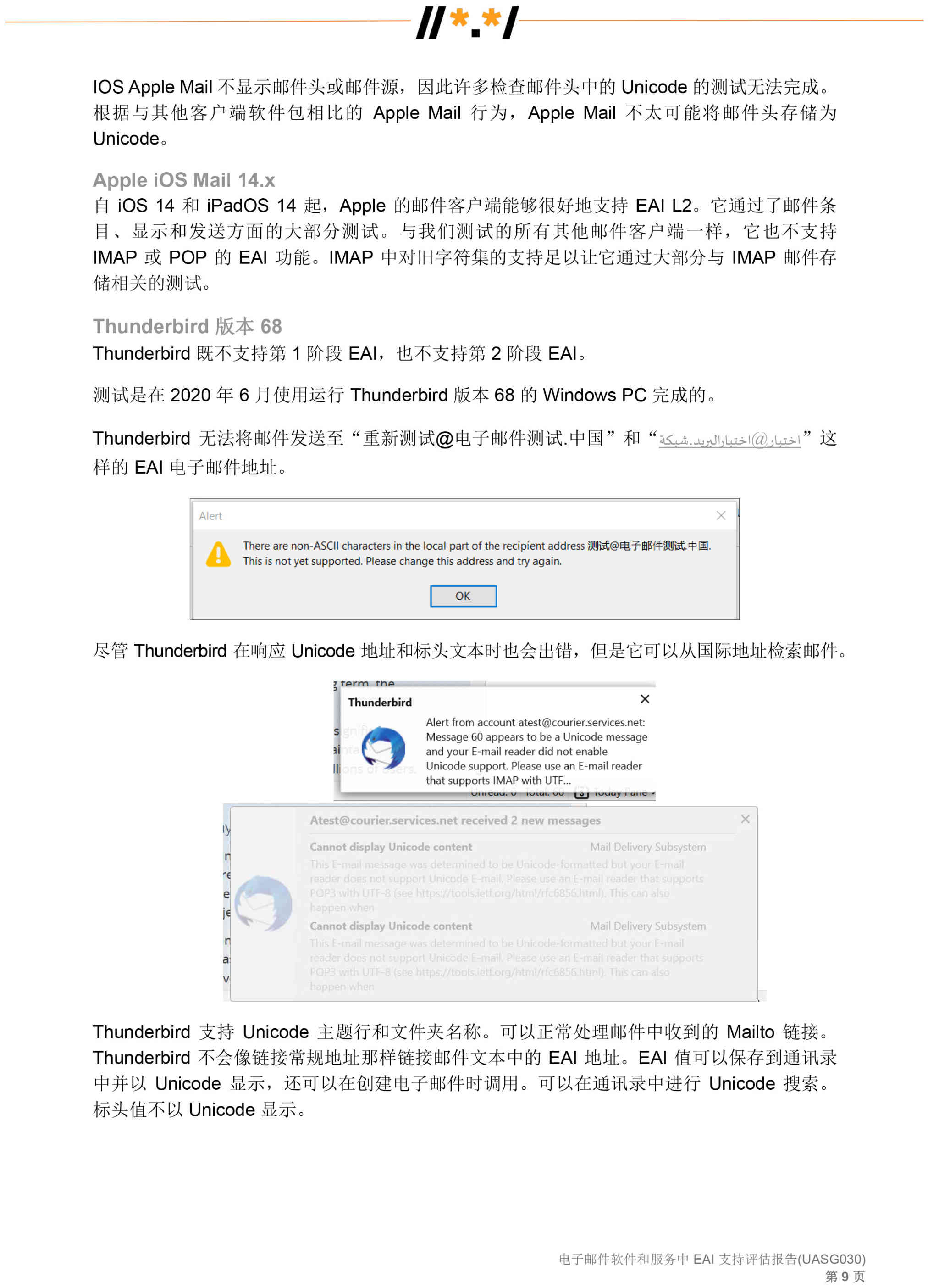 电子邮件软件和服务 中 EAI 支持评估报告 (UASG030)