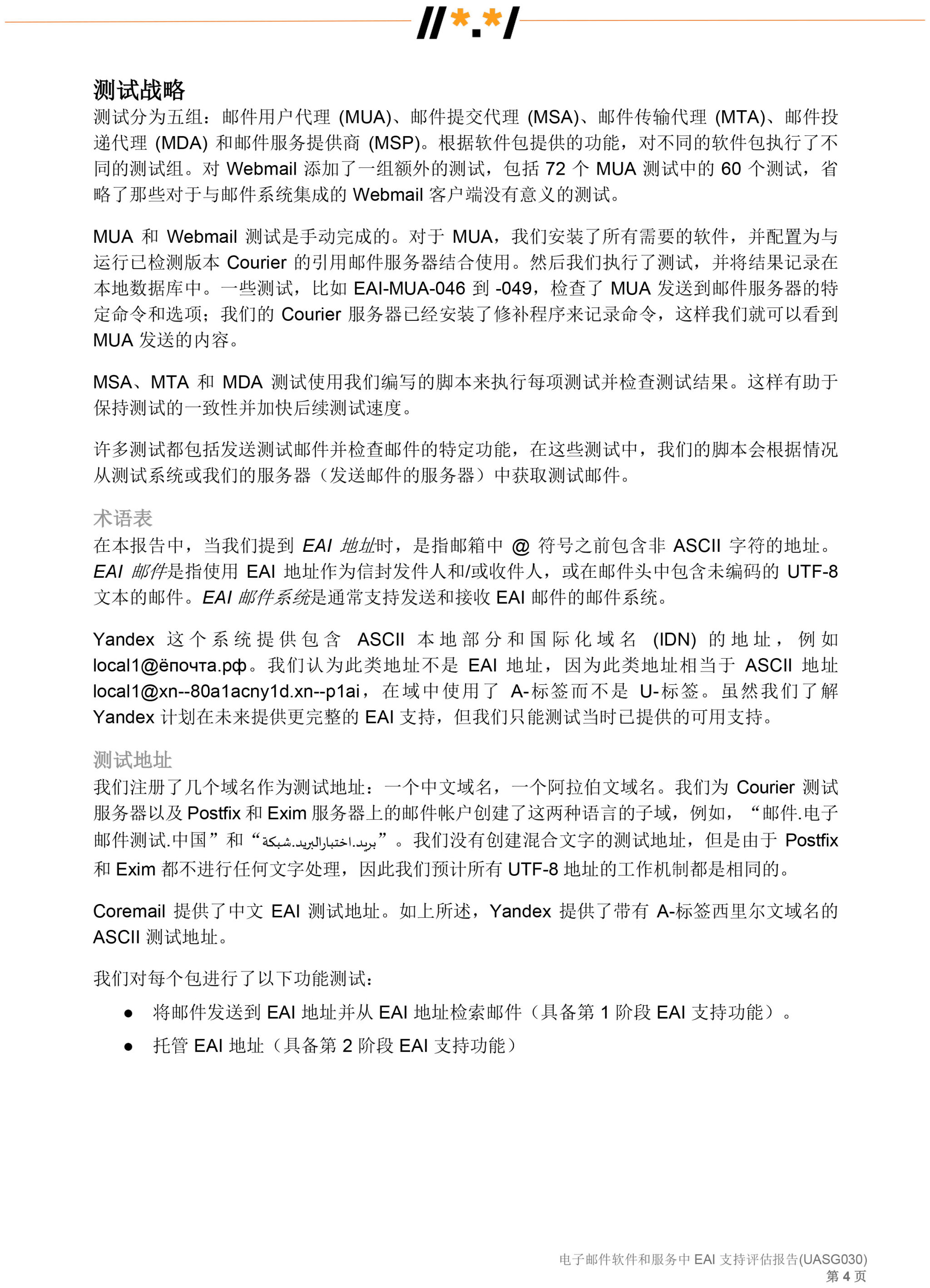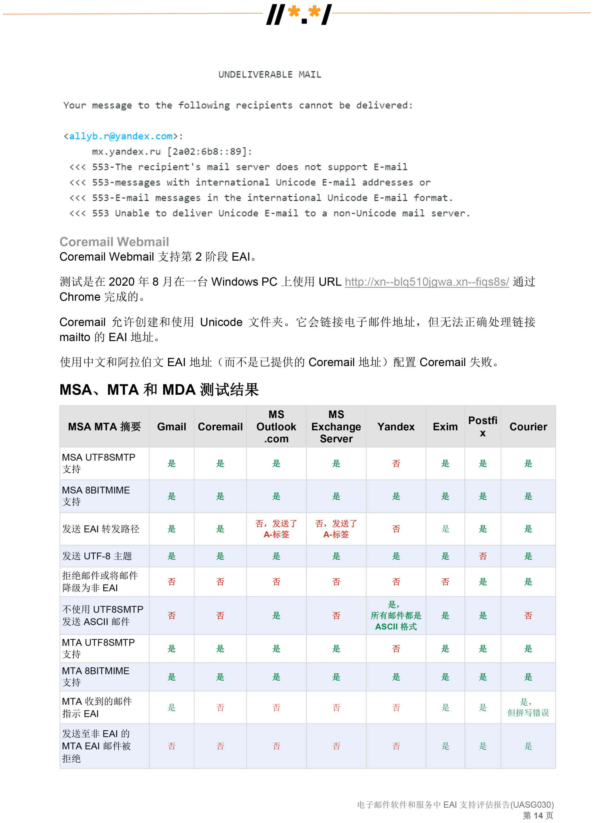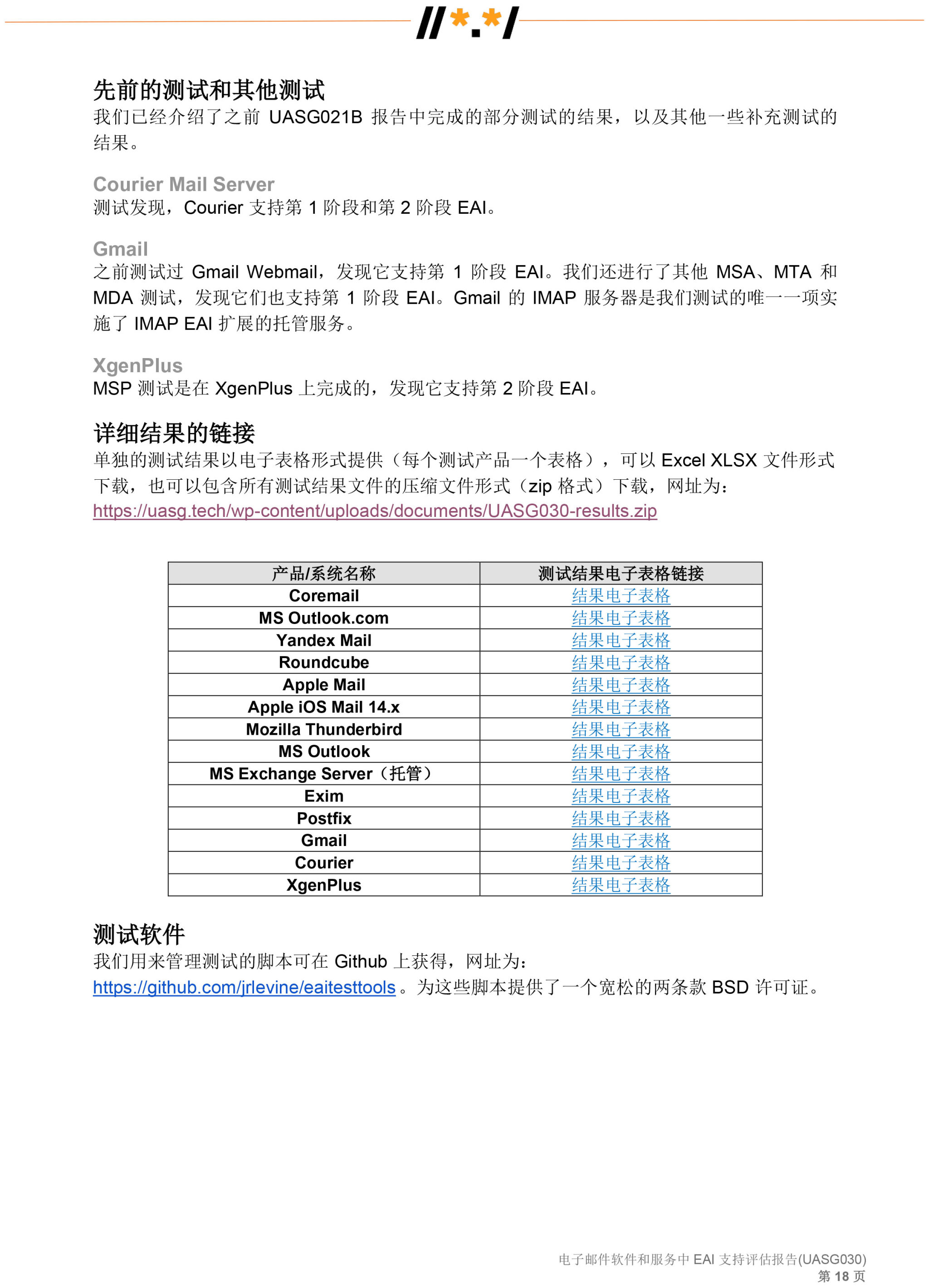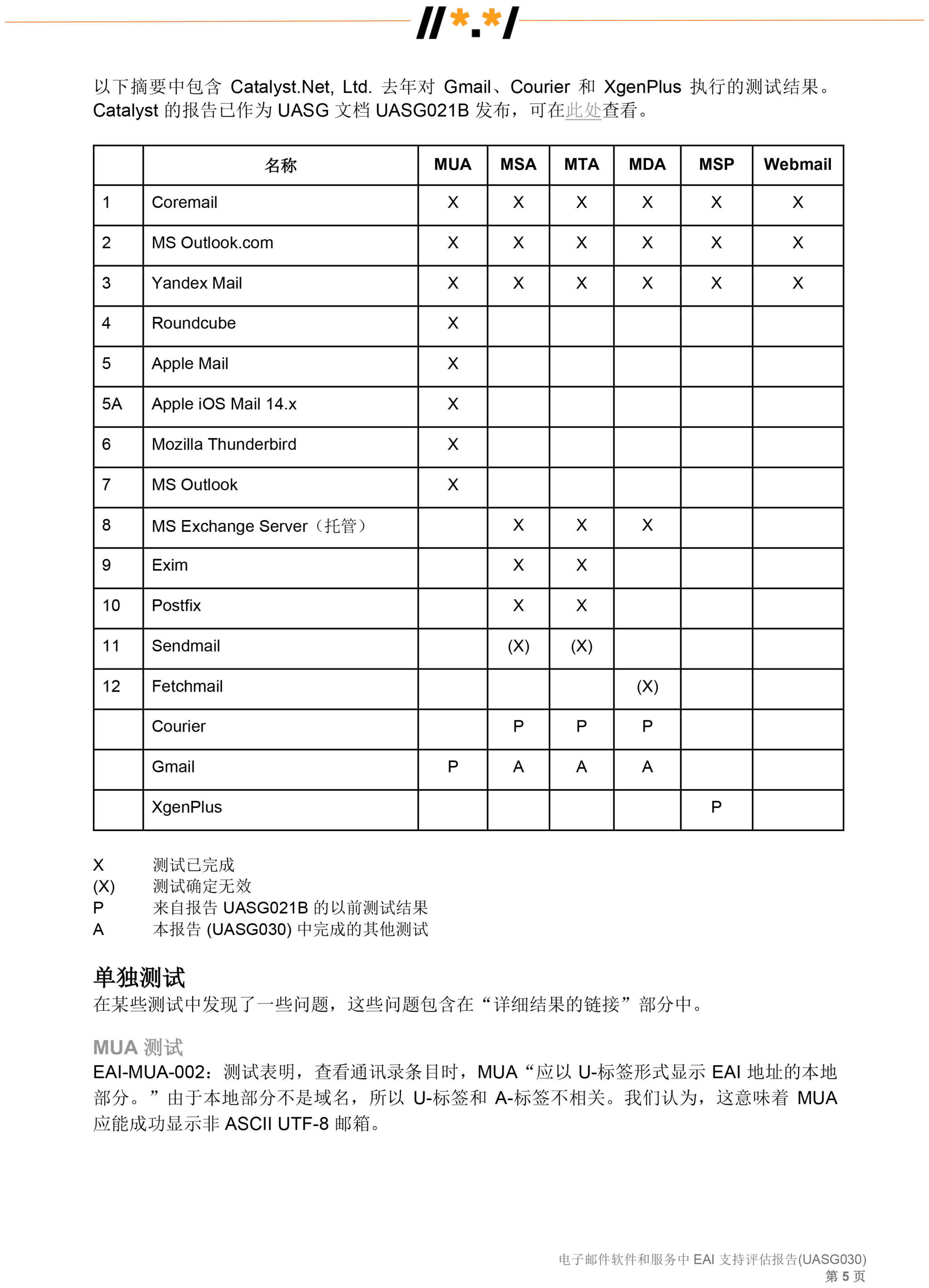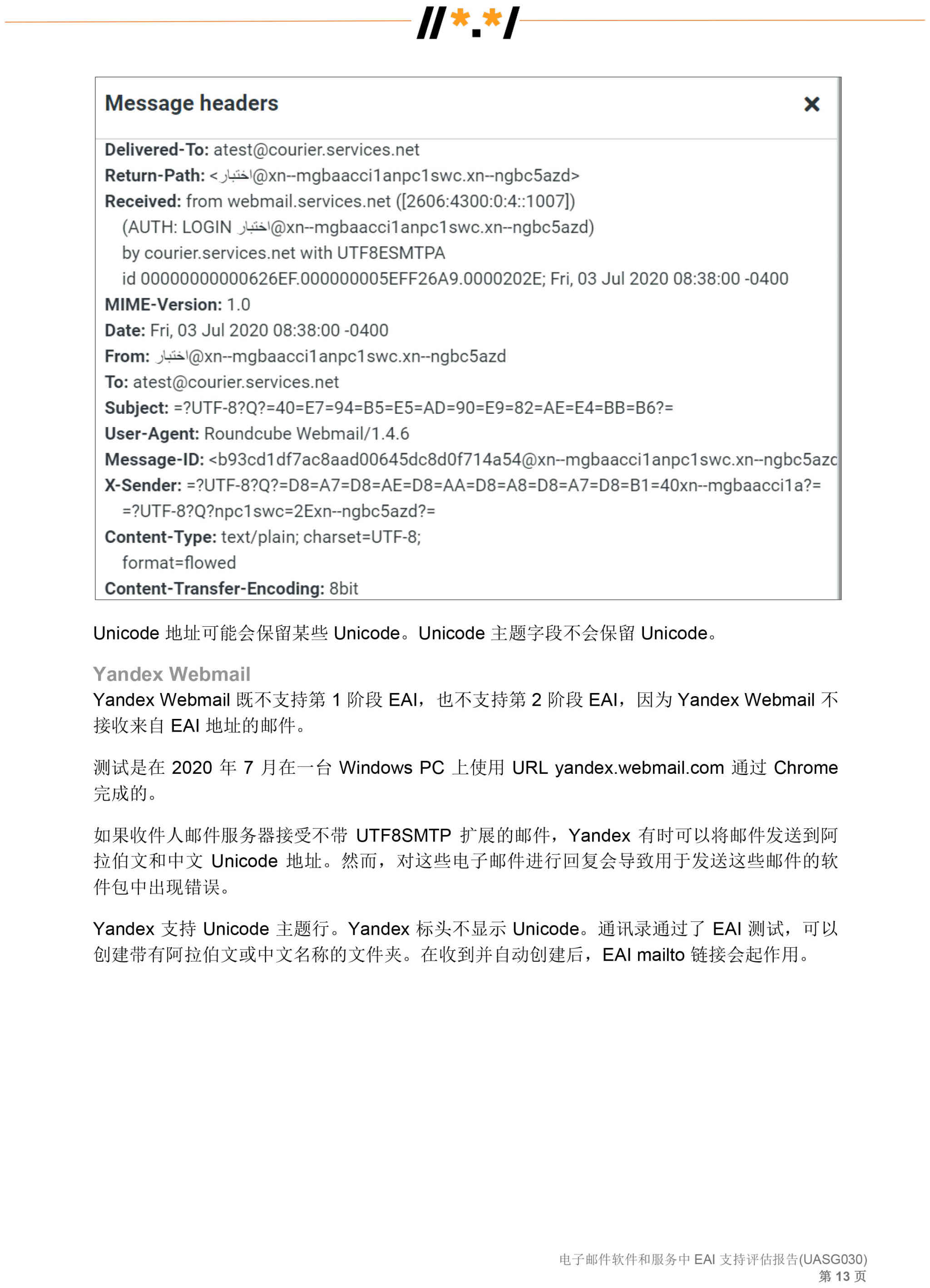 电子邮件软件和服务 中 EAI 支持评估报告 (UASG030)