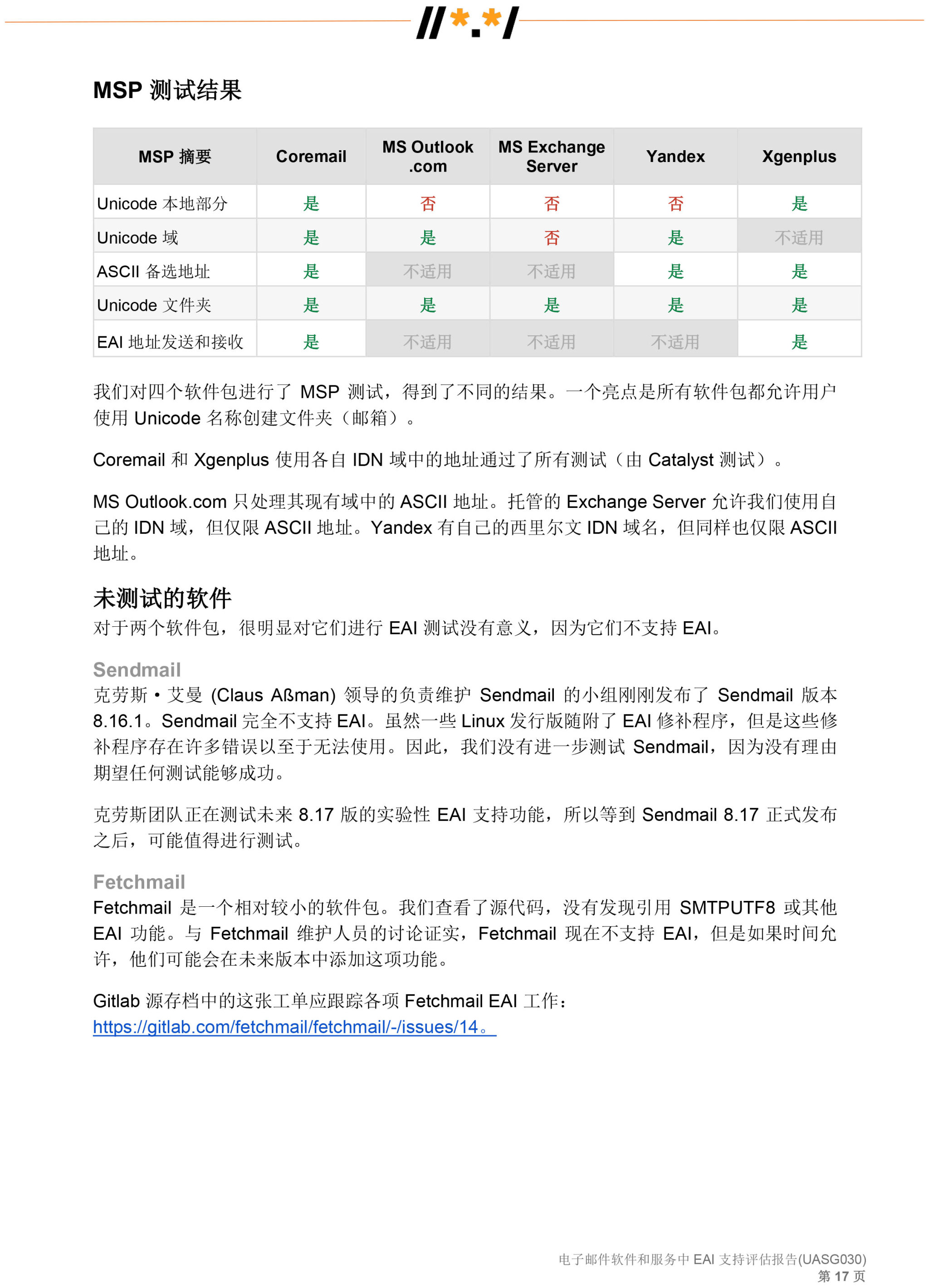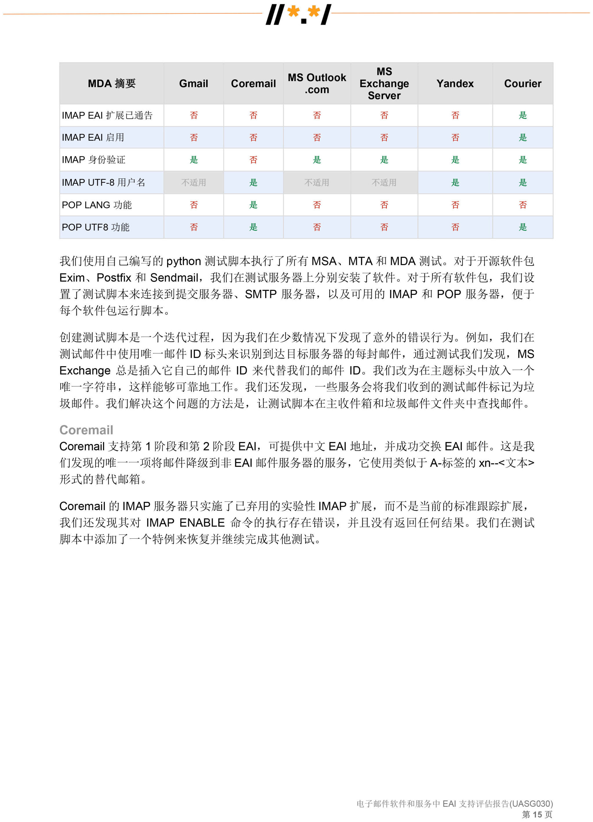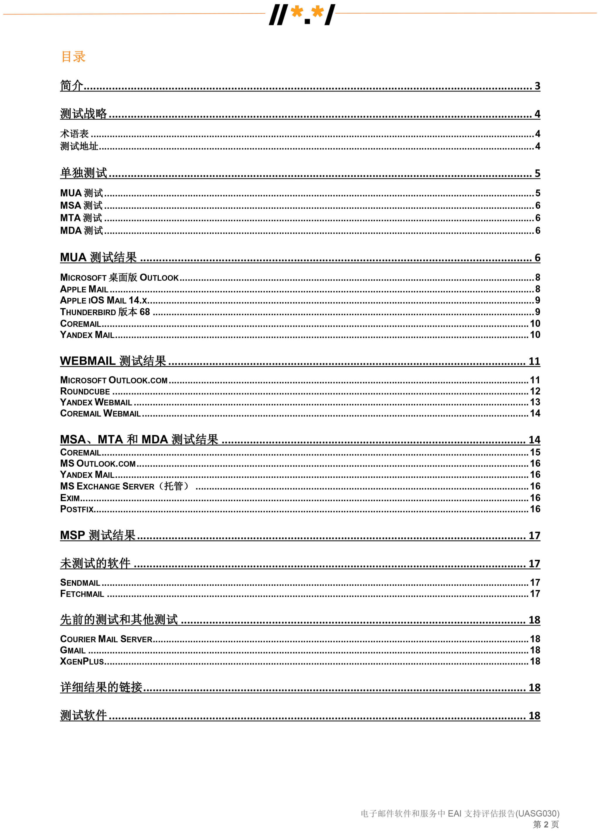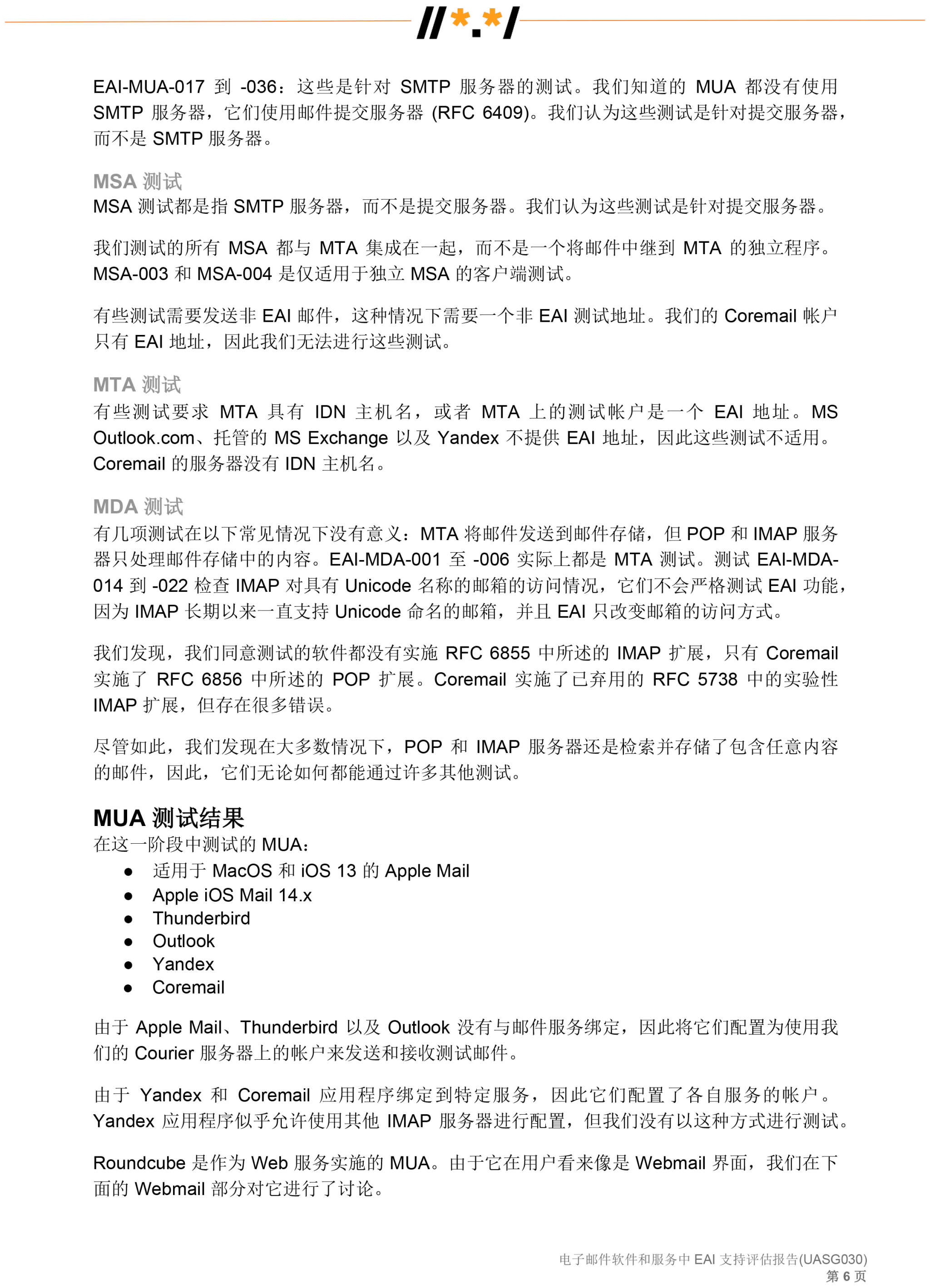 电子邮件软件和服务 中 EAI 支持评估报告 (UASG030)