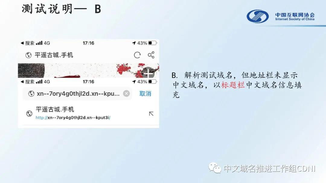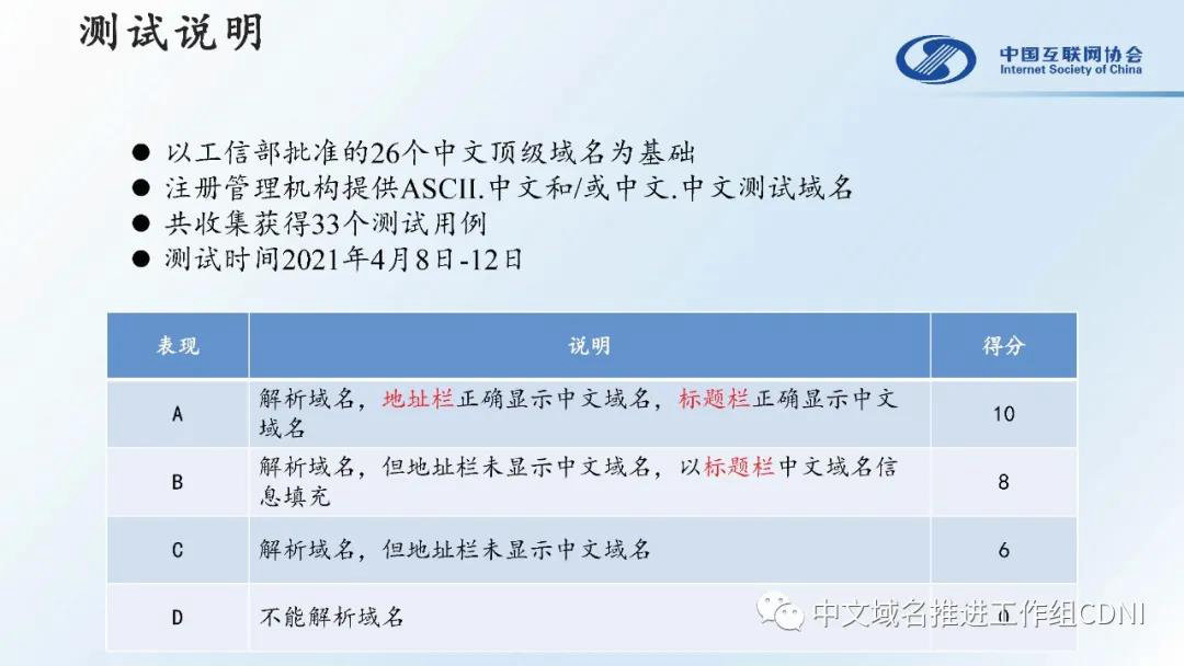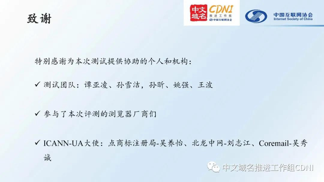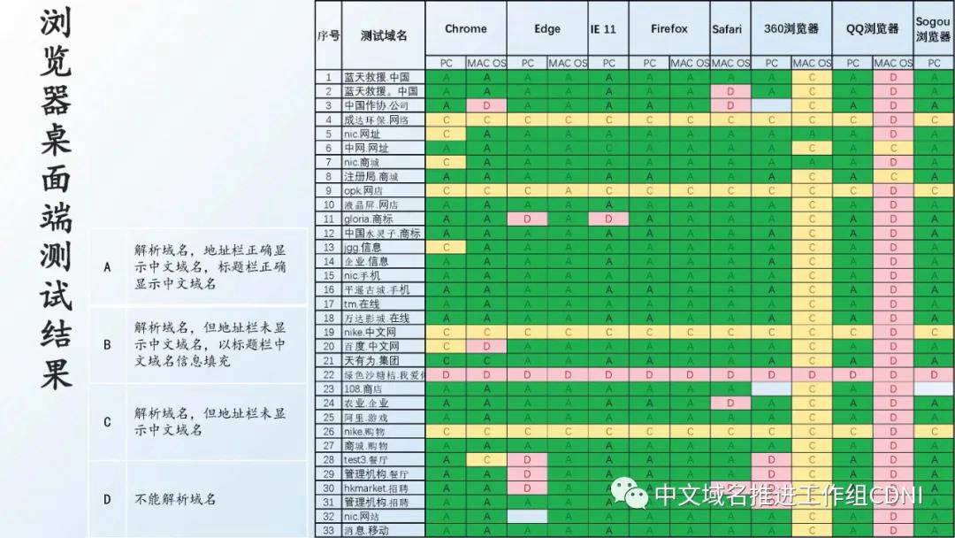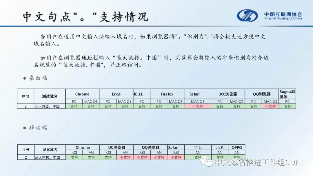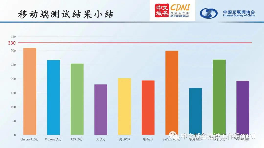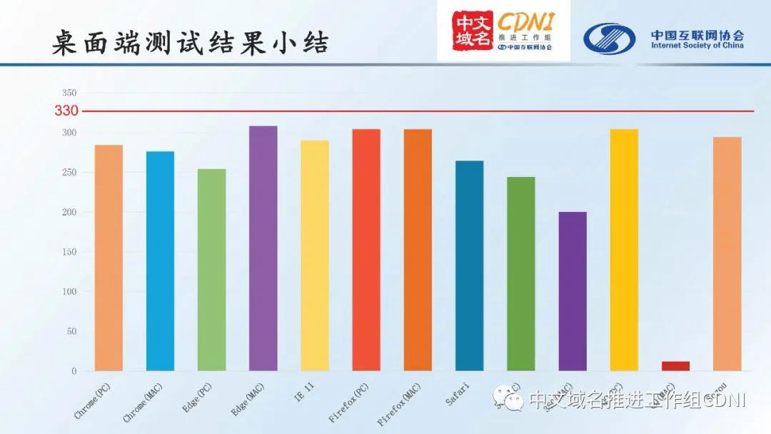 论坛上,中国互联网协会副秘书长、中文域名推进工作组组长裴玮发布了《浏览器中文域名普遍适用性测试报告》。评测涉及Chrome、Edge、IE11、360浏览器、QQ浏览器、Firefox、Safari、Sogou浏览器等浏览器。报告显示:在我国,浏览器对中文域名的支持度近些年逐步提高,应用厂商对中文域名重要性的认识程度不断加深;在对中文域名正常解析的基础上,浏览器的地址栏显示等一些普遍适用性还有待进一步完善;国内浏览器对中文域名的支持度相比国外厂商还有一定差距;移动端浏览器对中文域名的支持度相比桌面端还存在一定差距。