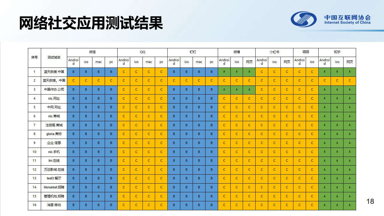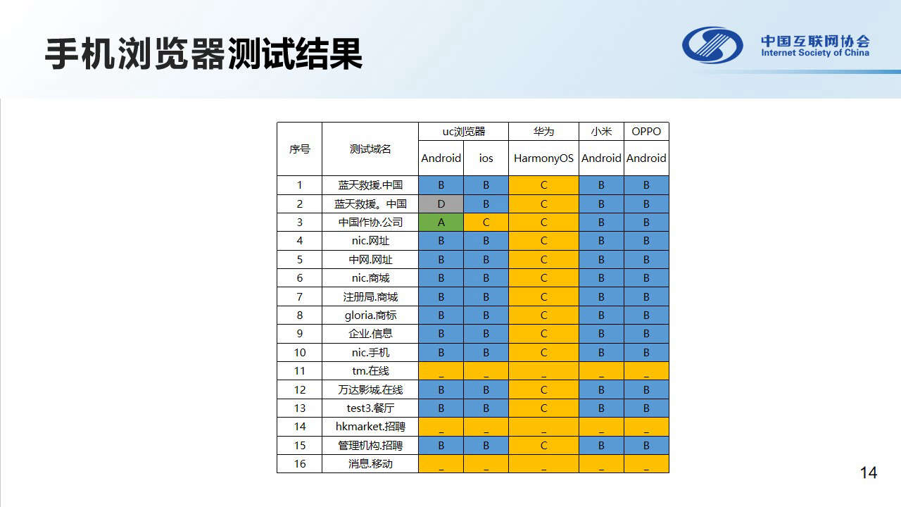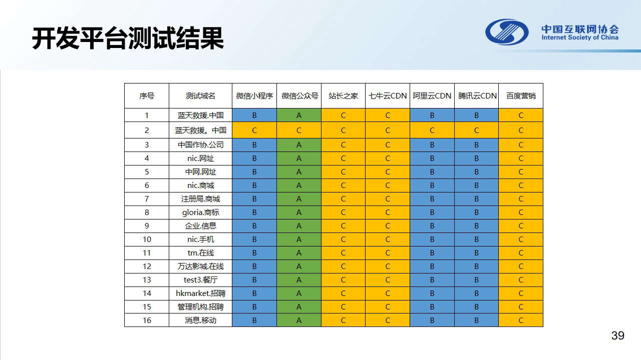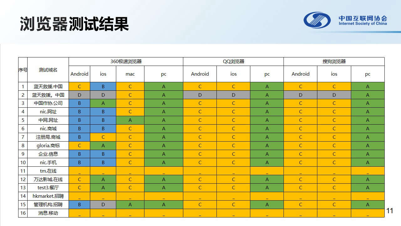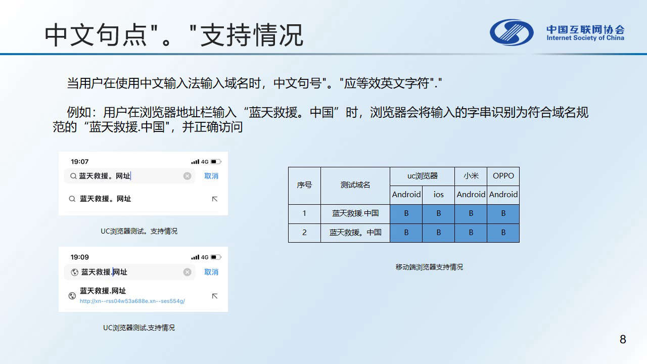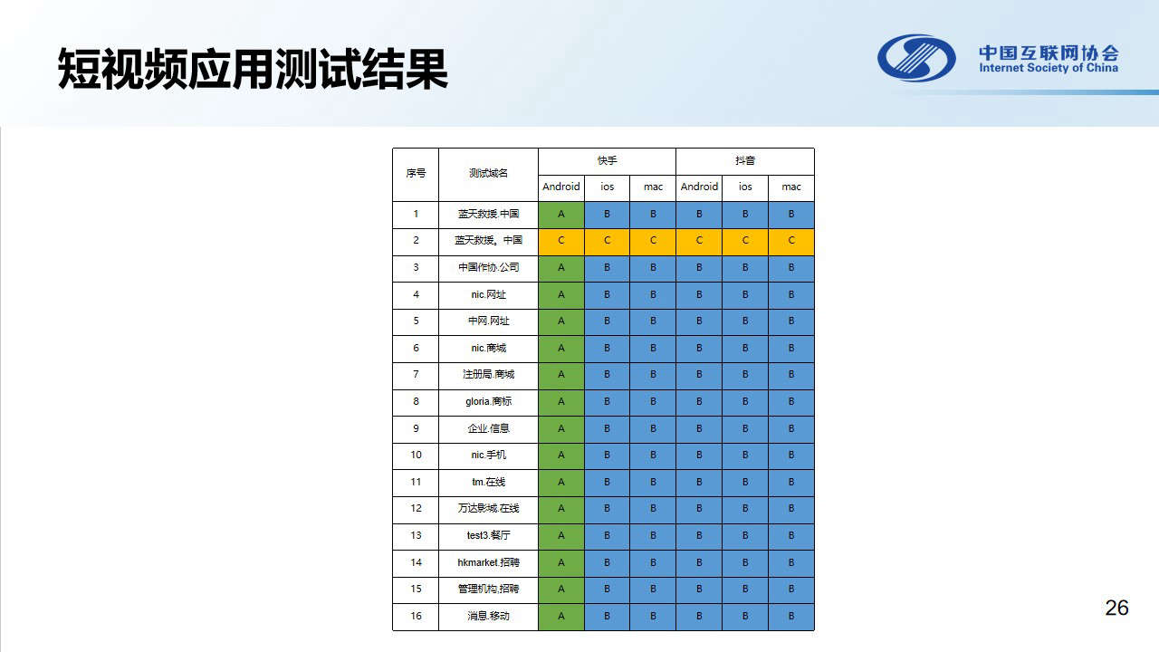 论坛上,中国互联网协会副理事长何桂立发布了《中文域名应用测试报告》,报告阐述了支持中文域名应用的表现形式,以及对浏览器、聊天社交、手机短信、短视频、搜索引擎、购物支付、开发平台、邮箱、输入法9个类别的应用进行了中文域名识别情况的测试。报告中总结指出:“ 由于我国不少互联网应用厂商未能为网民提供便捷的中文域名使用环境,导致中文域名的深化推广和应用在年轻人中滞后。”同时《报告》还给出了指导中文域名应用环境改善的多项建议。